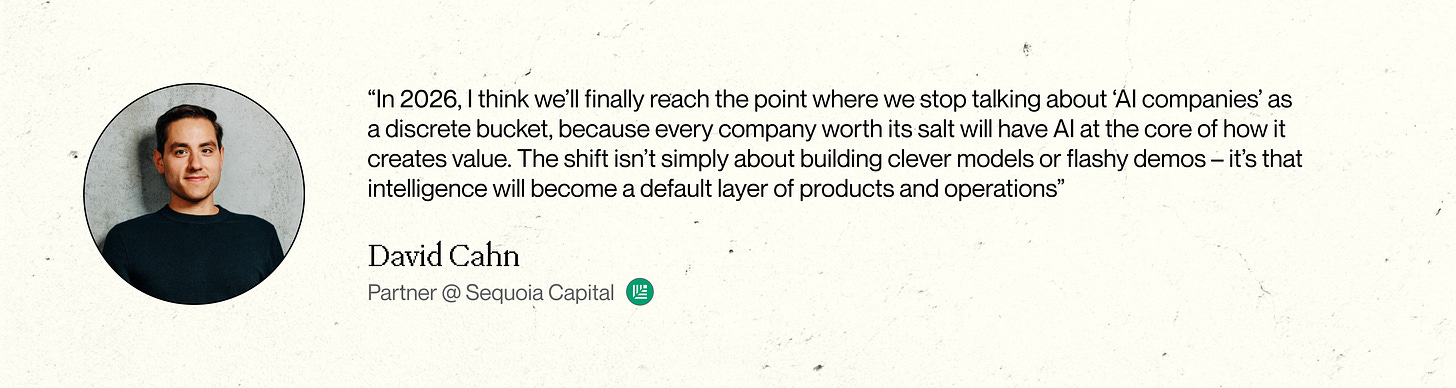 In parallel with mapping dominant themes, we also looked for statements that reflect deeper structural thinking about where the industry is heading. Out of hundreds of public predictions, we selected 5 quotes that we subjectively consider the most fundamental.