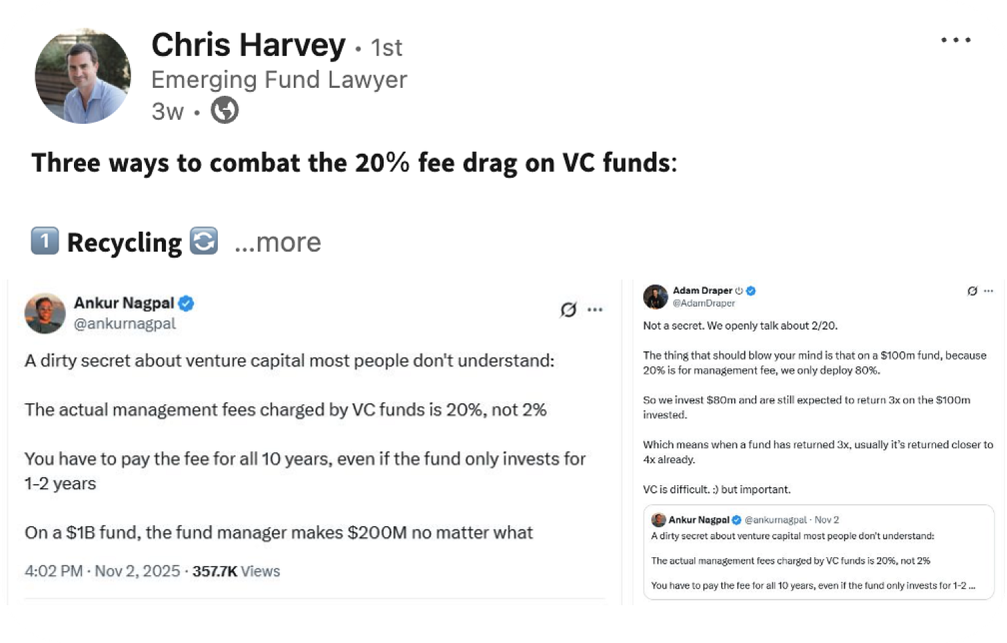 “Three ways to combat the 20% fee drag on VC Funds“