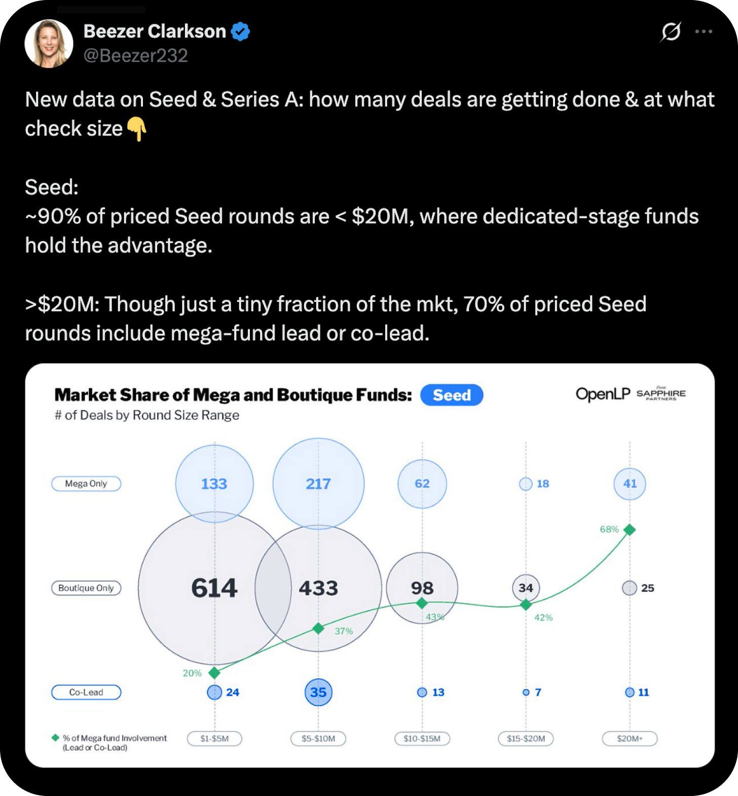“Seed & Series A: how many deals are getting done & at what check size“