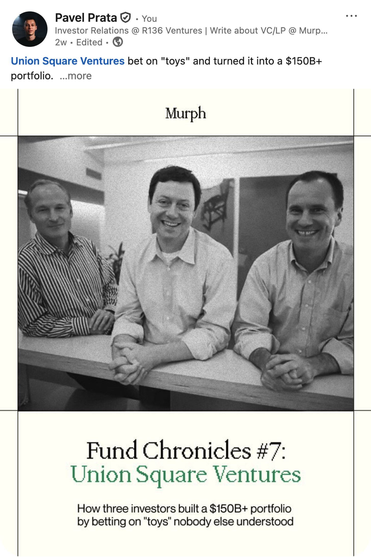 Union Square Ventures bet on “toys” and turned it into a $150B+ portfolio.